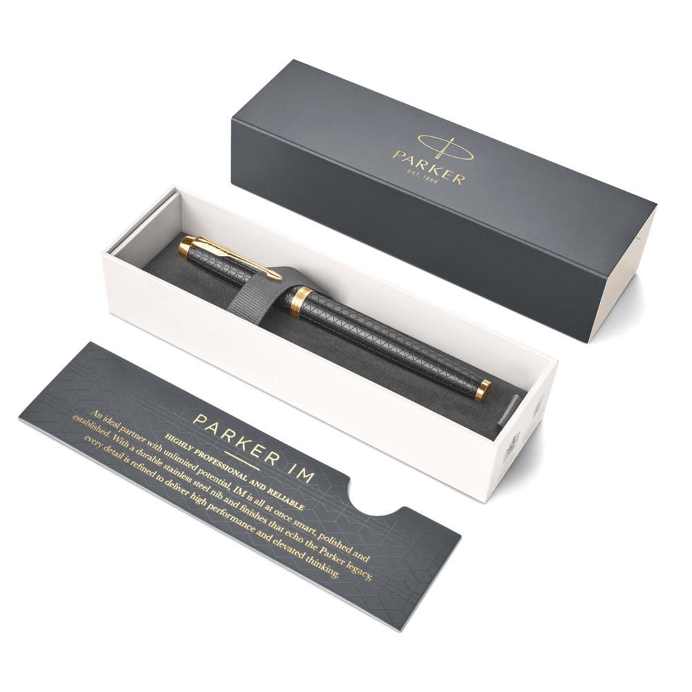 В новой коллекции Parker IM проявляется весь опыт Parker по созданию баланса формы и функциональности. Каждая деталь от стилизованной стрелки до стальной секции захвата, тщательно изучается, при этом лишние детали отбрасываются в пользу повышения комфорта, практичности и лаконичности стиля. Сочетая дизайн и стоимость по принципу "ничего лишнего" с непреходящим стремлением к обеспечению качества Parker, эта ручка стала идеальным пишущим инструментом для жизни в движении.